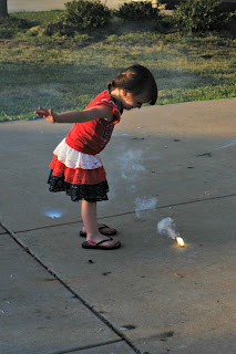 On Saturday, July 4th, we celebrated Independence Day! We went over to my Aunt Jenny's and set off fireworks with family members. The girls had so much fun! Please excuse their dirty faces, they were snacking and playing constantly!
